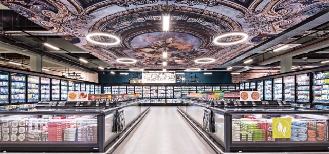 Schon bei der Grundrissgestaltung wurde eine klare übersichtliche Linie verfolgt, die den Kunden einen komfortablen Einkauf ermöglichen soll. Unterstützt wird dies durch breite Gänge. Die Produkte stehen im Vordergrund. Produktinformationen auf den Regalblenden sorgen ebenfalls für mehr Orientierung beim Einkauf. Thematisch passende Motive und bunte Dekorplatten in den oberen Regalzonen sorgen für Aufmerksamkeit und bieten gleichzeitig eine gute Übersicht über die Produkte und Angebote im Markt. Die kundenfreundliche Übersichtlichkeit hat bei der Gestaltung des Marktes eine große Rolle gespielt. Denn nur wenn der Kunde sich wohlfühlt, kommt er wieder. Für Wohlfühlatmosphäre sorgt die Industrie-Optik mit urbanen Akzenten. Die Säulen in Backstein-Optik unterstreichen den modernen Look des Marktes und fungieren gleichzeitig als Trenn-Elemente. Auch die vielen Holzelemente betonen diesen Look und stellen den Bezug zur Regionalität her, die im Naumburger Markt sowie im gesamten Storekonzept von MGV eine große Rolle spielt.