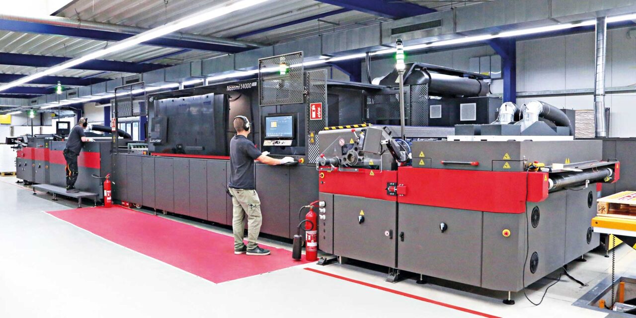 Unsere Nozomi 14000 SD ist die erste in Deutschland“, erklärt Pascal Voerhuis, der Geschäftsführer von Druckpunkt stolz. Seit Mai steht die Druckmaschine des global präsenten, US-amerikanischen Herstellers EFI im westfälischen Gronau-Epe, dem nahe der niederländischen Grenze gelegenen Sitz des Druckdienstleisters und Displayherstellers. Insgesamt 15 Druckanlagen gehören zum Maschinenpark des 1981 gegründeten Familienunternehmens, das Voerhuis zusammen mit seiner Schwester Vivian Gerick führt. Doch die neue Nozomi ist für den Chef von 120 Mitarbeitern eine ganz besondere Maschine.