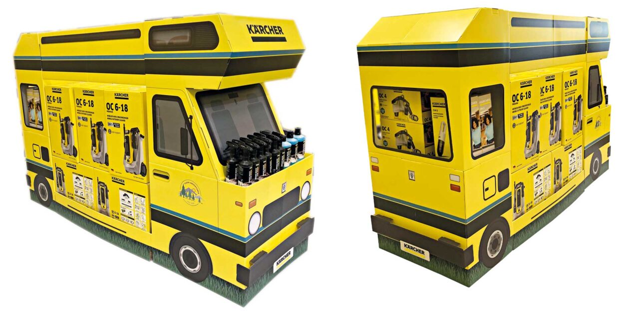 Wer an das Unternehmen Kärcher denkt, dem kommt zunächst der vor allem bei Haus- und Gartenbesitzern bekannte Hochdruckreiniger in den Sinn. Doch das Familienunternehmen hat einiges mehr zu bieten. Mehr als 17.000 Menschen sind für Kärcher in 170 Firmen in weltweit 85 Ländern tätig. Über 3.000 Produkte zählen zum Portfolio des globalen Players mit Hauptsitz in Winnenden. Gemeinsam mit VG Schoepe haben die Baden-Württemberger nun eine Promotion umgesetzt, die die Marke Kärcher optimal am POS widerspiegelt und zudem für Sichtbarkeit im Handel sorgt. Das Camper-Display ist nicht nur in den Unternehmensfarben gehalten und sorgt alleine deswegen schon für Aufmerksamkeit, auch die Größe des Displays ist beeindruckend. Die Zusammenarbeit von Kärcher und VG Schoepe fußt auf einer langjährigen Partnerschaft, bei der schon einige erfolgreiche Projekte umgesetzt wurden. Für den Kärcher-Traktor mit Anhänger wurde VG Schoepe im vergangenen Jahr beim Superstar Award in der Kategorie „Wellpappe groß“ mit Gold ausgezeichnet. Im Gespräch mit display berichten Barbara Kochendörfer, Trade Marketing Specialist Kärcher, Andreas Neubauer, Manager POS, Merchandise and Exhibitions Kärcher und Andrea Pohl, Kundenberaterin VG Schoepe, worauf es bei diesem Projekt ankam und welche Besonderheiten es mit sich brachte.