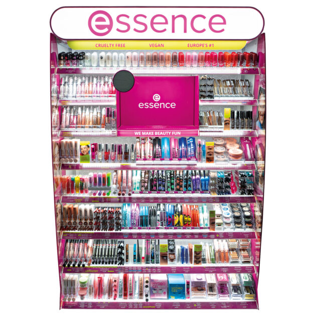 Die Theke setzt auf klare Linien, sanfte Rundungen und die für essence typische Farbwelt – modernisiert und zukunftsorientiert interpretiert. Das System überzeugt durch hohe Flexibilität: Es kann als Ein-Meter-Version genutzt oder per Crowner zur Zwei-Meter-Theke erweitert werden. Die Module lassen sich nebeneinander oder Rücken an Rücken platzieren und ermöglichen durch austauschbare Kommunikationsflächen schnelle Design-Updates. Ein integriertes Promofach mit Beleuchtung sorgt für zusätzliche Aufmerksamkeit und Inszenierung von Aktionsartikeln. Mit einem Gewicht von 67 Kilogramm und einer Aufbauzeit von fünf bis fünfzehn Minuten bietet das System eine langlebige, praxisgerechte Lösung für den Drogerie- und Fachhandel.